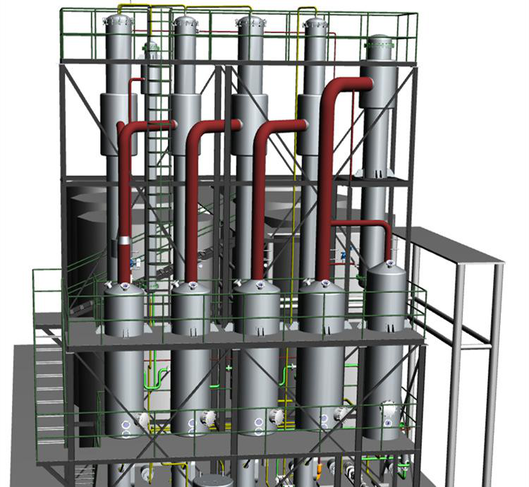 多效蒸發器,適用于牛奶、葡萄糖、淀粉、木糖、制藥、化工、生物工程、環保工程、廢液回收等行業進行低溫連續式蒸發濃縮,具有傳熱效率高,物料受熱時間短等主要特點,所以特別適用于熱敏性、粘滯性、發泡性等物料。